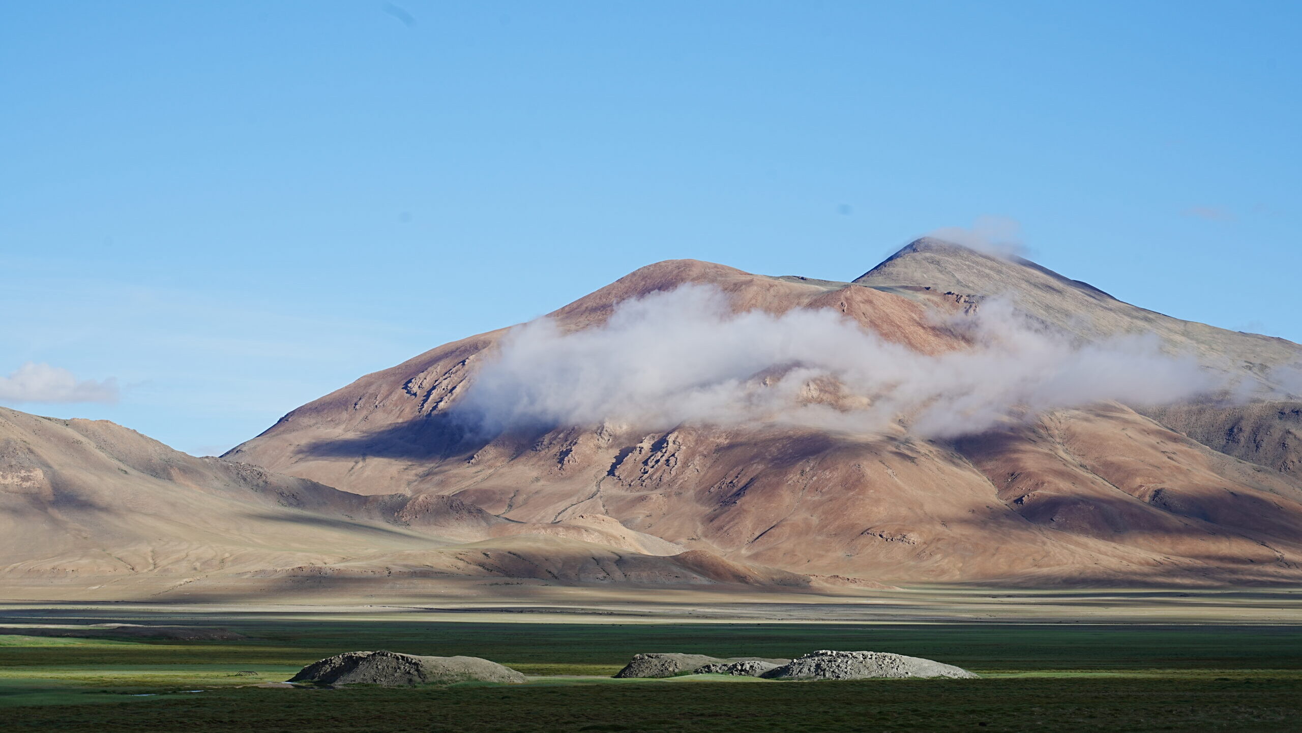 Putative solifluction lobes above Tso Kar’s eastern shore. Similar features have been sighted on Mars, probably also caused by solifluction, hinting at past freeze-thaw cycles.