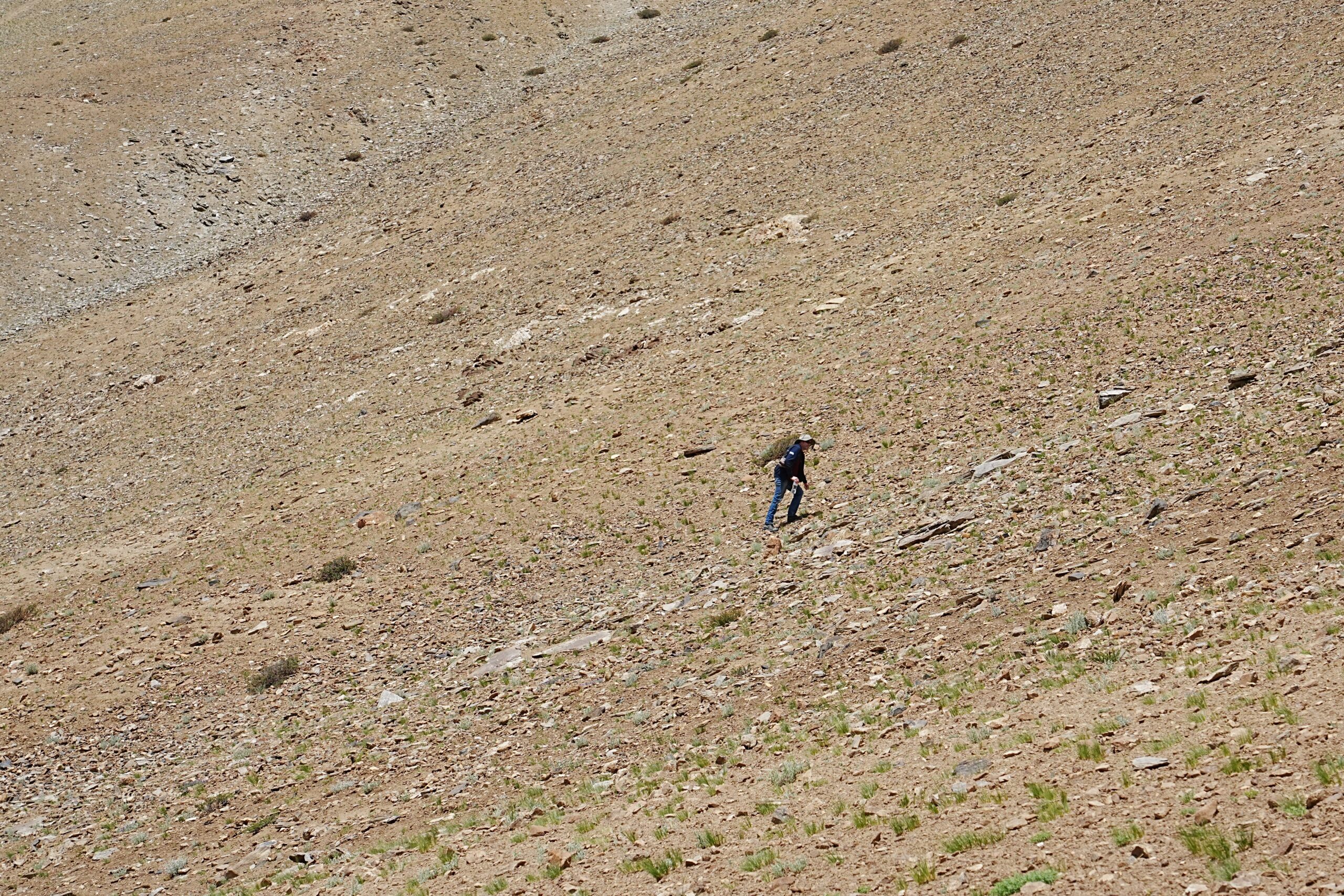 Robotics technician Steve Hobbs scales the exposed slopes – not a straightforward feat at 4600 m a.s.l. and around 570 hPa atmospheric pressure!